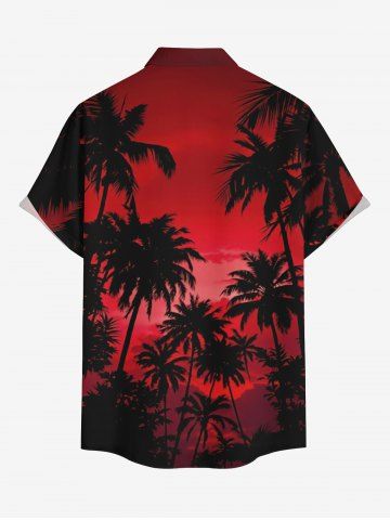 Chemise à poches boutonnées grande taille pour homme, imprimée ciel ombré et cocotiers, style hawaïen - Rouge - Rouge