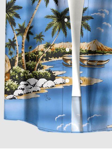 Chemise à poches boutonnées grande taille pour homme, imprimée cocotiers, plage et hawaïenne. - Bleu Ciel - Bleu Ciel