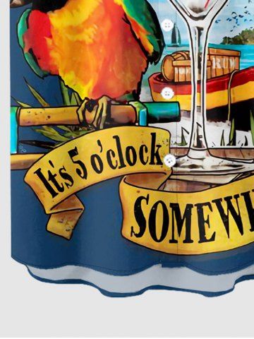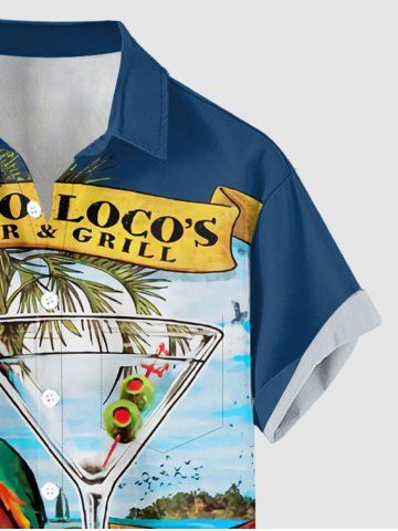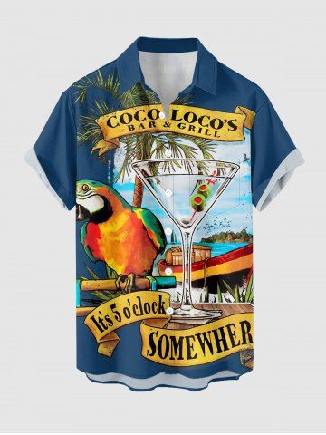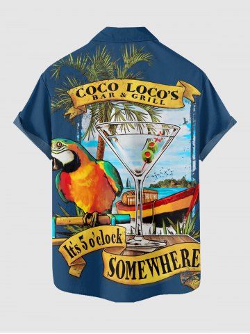 Chemise à poches boutonnées grande taille pour homme, imprimée de cocotiers, de perroquets et de paysages marins d'Hawaï. - Bleu Profond - 6xl