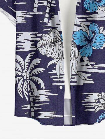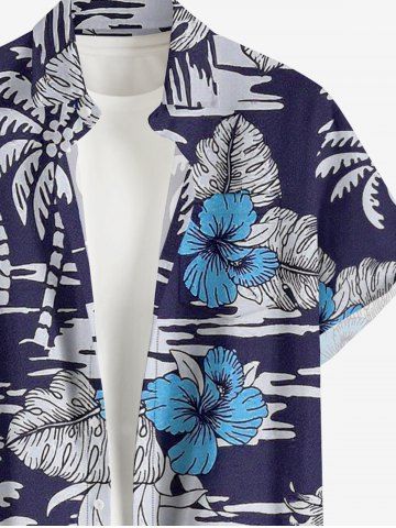 Chemise à poches boutonnées grande taille pour homme, imprimée de feuilles tropicales de cocotiers et d'hibiscus, style hawaïen. - Bleu Profond - S