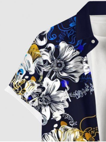 Chemise à Manches Courts> Chemise à poches boutonnées grande taille pour homme, imprimée de fleurs aquarelle.