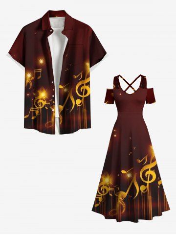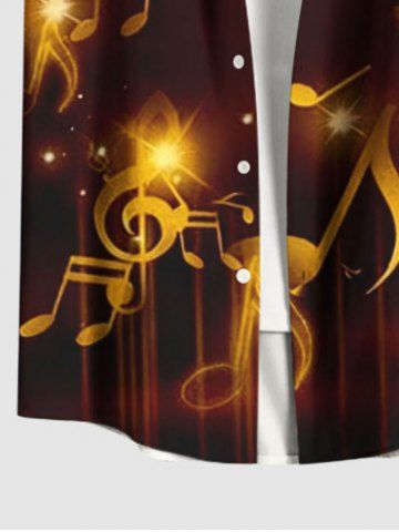Chemise à poches boutonnées grande taille pour homme, imprimée de symboles musicaux et d'étoiles pailletées. - Café Profond - Xl