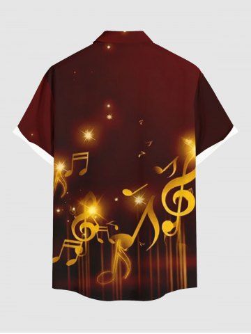 Chemise à Manches Courts > Chemise à poches boutonnées grande taille pour homme, imprimée de symboles musicaux et d'étoiles pailletées.