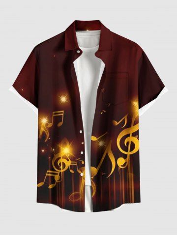 Chemise à Manches Courts > Chemise à poches boutonnées grande taille pour homme, imprimée de symboles musicaux et d'étoiles pailletées.