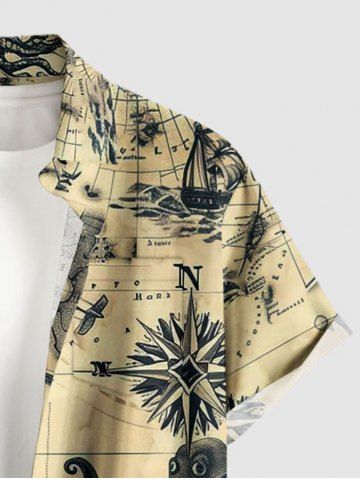Chemise à poches boutonnées grande taille pour homme, imprimée pieuvre, voilier et carte marine, croisière à Hawaï. - Bronze - M