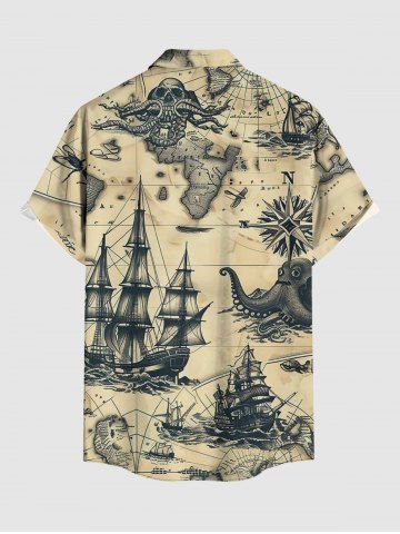 Chemise à Manches Courts > Chemise à poches boutonnées grande taille pour homme, imprimée pieuvre, voilier et carte marine, croisière à Hawaï.