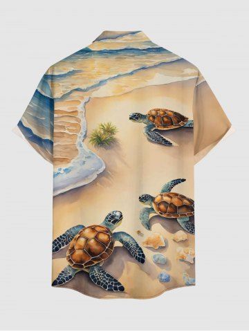 Chemise à poches boutonnées grande taille pour homme, imprimée tortues marines, créatures hawaïennes. - Café Lumière - Xl