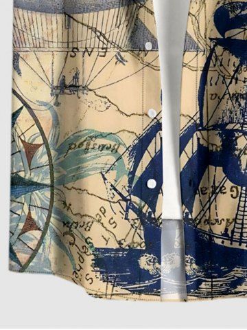 Chemise à poches boutonnées grande taille pour homme, imprimée voilier, croisière à Hawaï - Café Lumière - 6xl