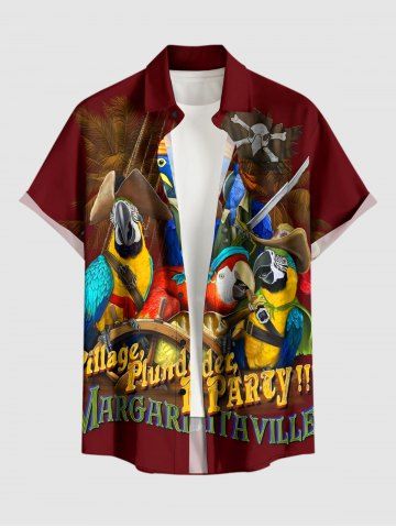 Chemise à poches boutonnées grande taille pour homme, motif perroquet et cocotier, inspirée des pirates, avec imprimé croisière à Hawaï. - Rouge Foncé - M