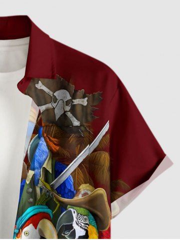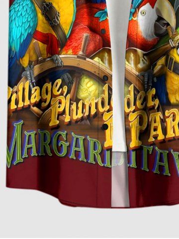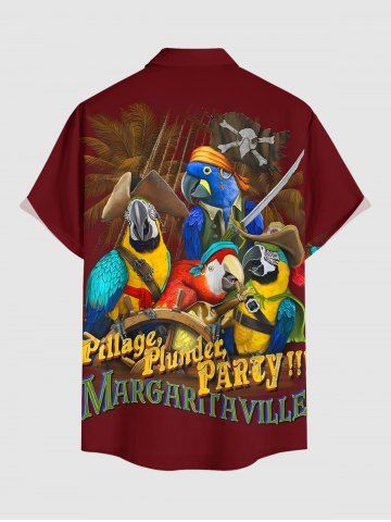 Chemise à poches boutonnées grande taille pour homme, motif perroquet et cocotier, inspirée des pirates, avec imprimé croisière à Hawaï. - Rouge Foncé - 5xl