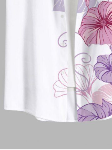 Chemise à poches boutonnées Hawaï à imprimé floral et feuilles grande taille pour hommes - Blanc - Blanc