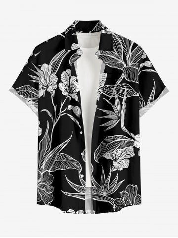 Chemise à poches boutonnées hawaïennes à imprimé floral tropical et feuilles grandes tailles pour hommes - Noir - Noir