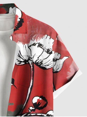 Chemise à Manches Courts> Chemise à poches boutonnées hawaïennes grande taille pour homme, imprimée de fleurs et de feuilles. Modèle Hawaï.