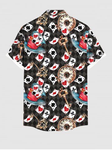 Chemise à poches boutonnées imprimée avec horloge et clé de poker grande taille pour hommes - Multi-a - S