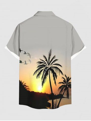 Chemise à poches boutonnées pour homme, grande taille, imprimé cocotiers et coucher de soleil hawaïen, pour homme. - Gris Clair - Gris Clair