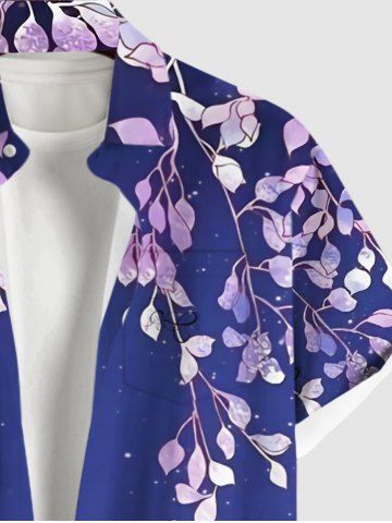 Chemise à Manches Courts> Chemise à poches boutons grande taille pour homme, imprimé hawaïen ciel ombré galaxie nuage feuille branches