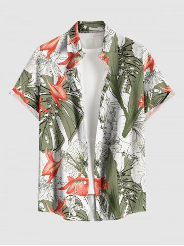 Chemise à Manches Courts > Chemise à poches boutons grande taille pour homme, imprimée de fleurs d'hibiscus et de feuilles tropicales, style hawaïen.
