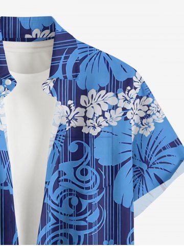 Chemise à poches boutons grande taille pour homme, imprimée de fleurs d'hibiscus et de feuilles tropicales, style hawaïen. - Bleu - Bleu