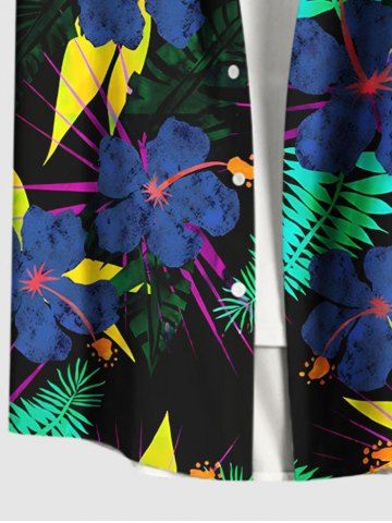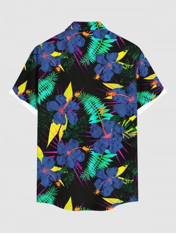 Chemise à poches boutons grande taille pour homme, imprimée de fleurs d'hibiscus et de feuilles tropicales, style hawaïen. - Noir - Noir
