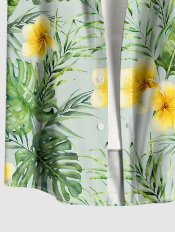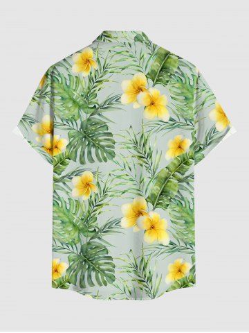 Chemise à poches boutons grande taille pour homme, imprimée de fleurs d'hibiscus et de feuilles tropicales, style hawaïen. - Vert - Vert