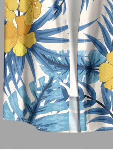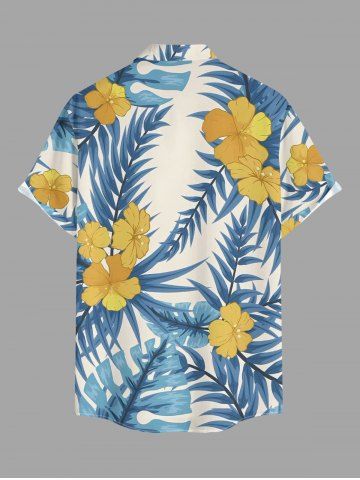 Chemise à poches boutons grande taille pour homme, imprimée de fleurs d'hibiscus et de feuilles tropicales, style hawaïen. - Bleu Poudre - 6xl