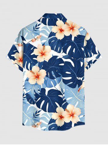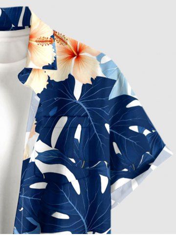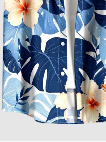 Chemise à poches boutons grande taille pour homme, imprimée de fleurs d'hibiscus et de feuilles tropicales, style hawaïen. - Bleu - Bleu