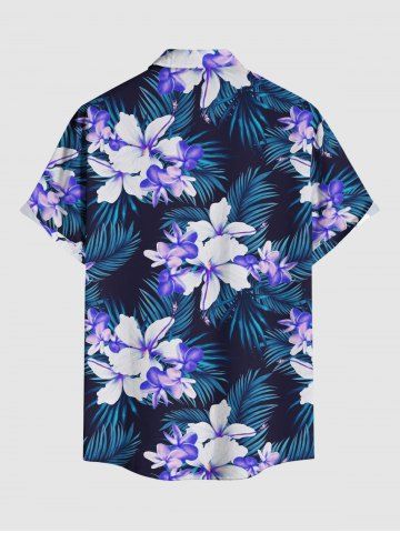Chemise à poches boutons grande taille pour homme, imprimée de fleurs d'hibiscus et de feuilles tropicales, style hawaïen. - Bleu Profond - L