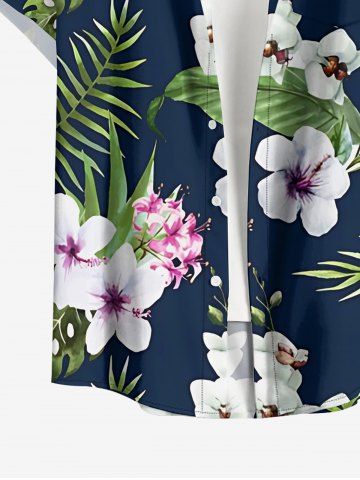 Chemise à poches boutons grande taille pour homme, imprimée de fleurs d'hibiscus et de feuilles tropicales, style hawaïen. - Cadetblue - Xl