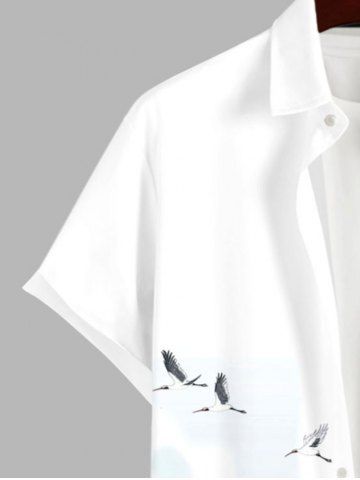 Chemise à Manches Courts > Chemise à boutons et poches pour homme, motif grue de montagne et pin, avec imprimé peinture à l'encre