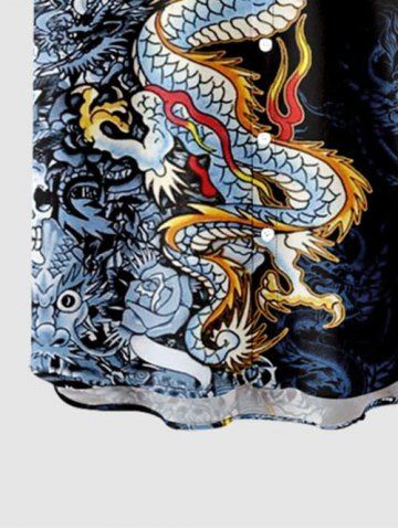 t*****a4Plus Size Dragon Wizard Skulls Rose Flower Print Button Pocket Shirt For MenColor: BLACK Size: 4XLlooks amazing on him