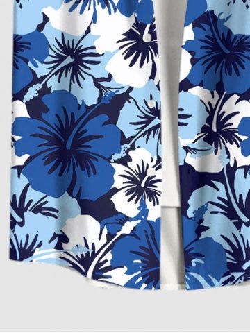 Chemise avec Poches et Boutons à Imprimé Fleurs pour Hommes - Bleu - Bleu