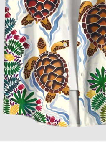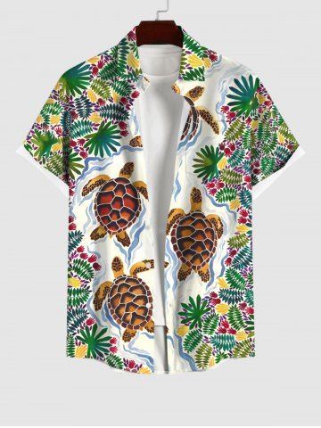Chemise à Manches Courts> Chemise avec Poches Fleur Feuille de Palmier et Tortue Imprimées de Grande Taille avec Boutons