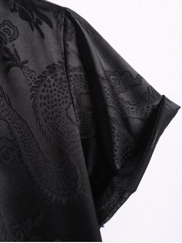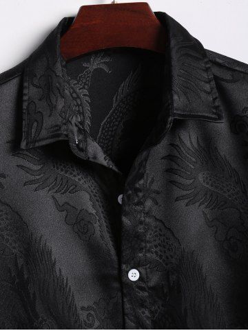 Chemise Bicolore Boutonnée Dragon et Jacquard à Manches Courtes en Satin pour Hommes - Noir - Noir
