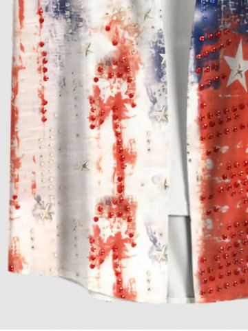 Chemise Bicolore Boutonnée Drapeau Américain Imprimé avec Fausse Poche - Multi-a - L