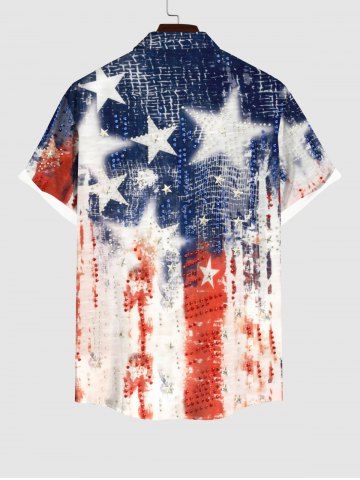 Chemise Bicolore Boutonnée Drapeau Américain Imprimé avec Fausse Poche - Multi-a - 3xl