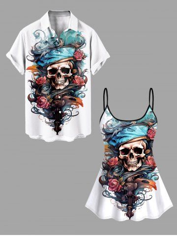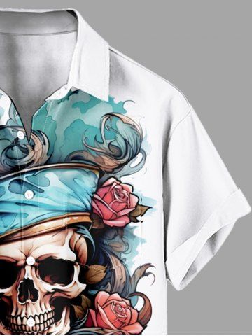 Chemise Bicolore Boutonnée Feuille de Pirate Imprimés avec Poche de Grande Taille pour Homme - Blanc - Blanc