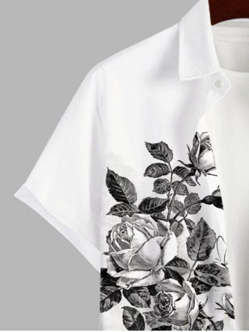 Chemise Bicolore Boutonnée Feuille et Fleur Imprimées avec Poche de Grande Taille pour Homme - Blanc - Blanc