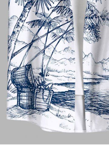 Chemise Boîte D'Océan Montagne Arbre Noix de Coco Imprimés de Grande Taille avec Poche - Blanc - Blanc