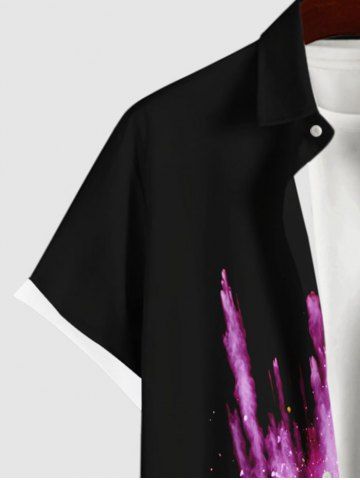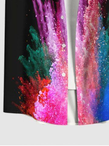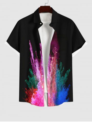 Chemise Boutonnée à Imprimé Éclaboussure de Peinture Colorée avec Poche Poitrine pour Hommes Grande-Taille - Noir - Noir