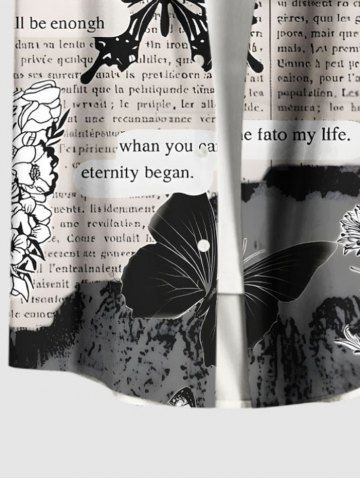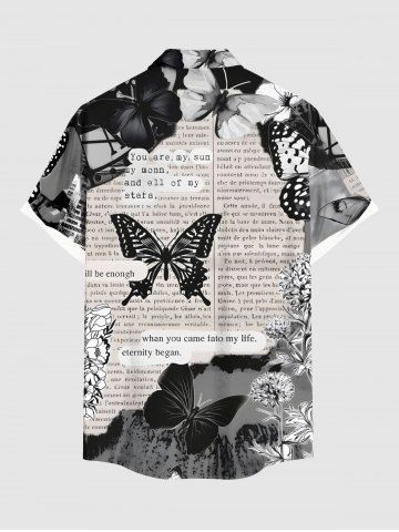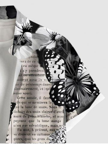Chemise à Manches Courts> Chemise boutonnée à imprimé journal et papillons grande taille pour homme