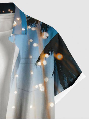 Chemise Boutonnée Brillante Imprimé Cocotier D'ombre Grande Taille en Maille Transparente pour Homme - Bleu Clair - Bleu Clair