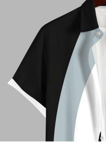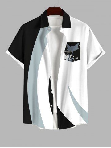 Chemise à Manches Courts > Chemise Boutonnée Chat Imprimé Rayée en Blocs de Couleurs avec Poche de Grande Taille pour Homme