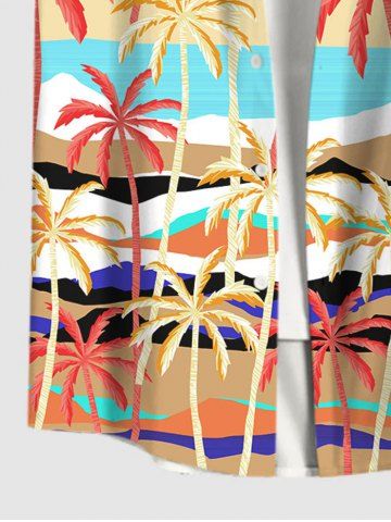Chemise Boutonnée Cocotier Océan Imprimé en Blocs de Couleurs Grande Taille avec Poche - Multi-a - 2xl