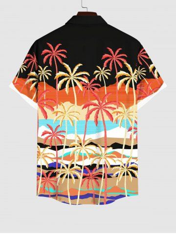 Chemise à Manches Courts> Chemise Boutonnée Cocotier Océan Imprimé en Blocs de Couleurs Grande Taille avec Poche