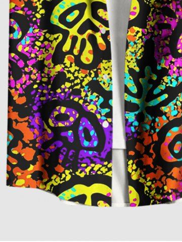 Chemise à Manches Courts> Chemise Boutonnée Crâne Colorée et Peinture Eclaboussée Imprimées avec Poche de Grande Taille pour Homme
