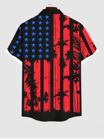 Chemise à Manches Courts> Chemise Boutonnée Drapeau Américain Imprimé avec Poche de Grande Taille