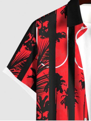 Chemise Boutonnée Drapeau Américain Imprimé avec Poche de Grande Taille - Rouge - Rouge