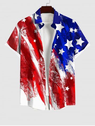 Chemise Boutonnée Drapeau Américain Imprimé avec Poche de Grande Taille pour Homme - Multi-a - 2xl