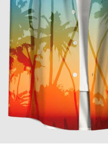 Chemise Boutonnée en Blocs de Couleurs Arbre de Noix de Coco Imprimé Grande Taille avec Poche - Multi-a - Xl