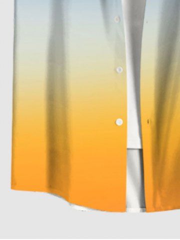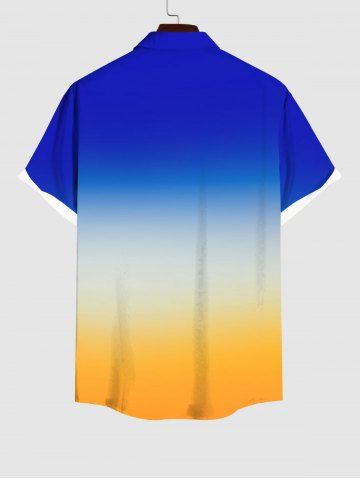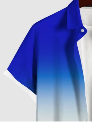 Chemise à Manches Courts> Chemise Boutonnée en Blocs de Couleurs Ombrée Imprimée Grande Taille avec Poche